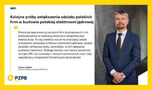 Powstanie Stowarzyszenia PZPB-Atom to krok milowy w kierunku budowy silnego zaplecza wykonawczego dla pierwszej polskiej elektrowni jądrowej. Naszą ambicją jest zagwarantowanie realnego udziału polskich firm w tym przełomowym projekcie i wypracowanie mechanizmów, które umożliwią ich skuteczne konkurowanie z międzynarodowymi podmiotami. Chcemy, aby local content nie był dodatkiem, ale realnym filarem tej inwestycji – dla dobra naszej gospodarki, jak i bezpieczeństwa energetycznego kraju.